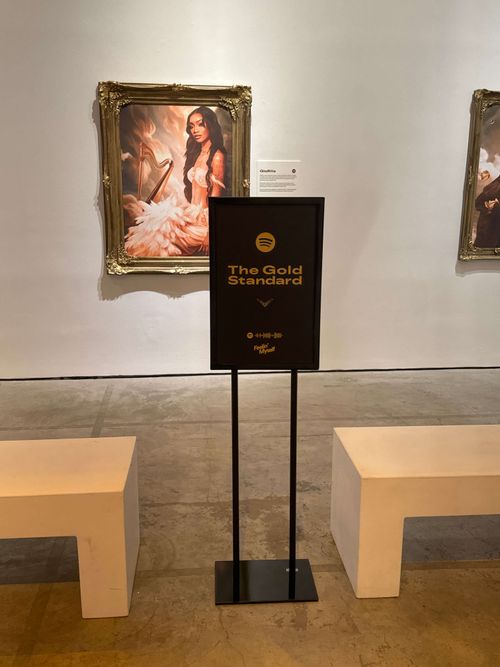 Spotiy came to us with this amazing idea to represent and highlight the top women in hip hop. Leaning into the golden era and renaissance style art, we looked to create an art show curated to fit the storyline. Highness researched all of the top up and coming female artists that specialize in portraits and likeness and stumbled across the talented Manon Biernaki, a french-canadian artist. Working closely with her and the Spotify creative team we developed 11 unique portraits and one large mural composition showcasing our gorgeous hip-hop artists and putting them in the sky as our muses. This multi-day art show was held at an iconic gallery in SOHO and opened the doors for fans and off the street guests to come in and experience.